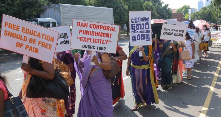 A Study on Child Disciplinary Methods Practiced in Schools in Sri Lanka by the National Child Protection Authority in 2017 revealed that nearly 80% of students are subjected to at least one episode of corporal punishment during one school term. Students walk in solidarity, requesting greater protection.